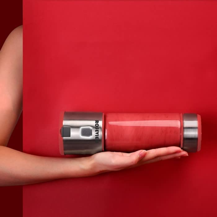 ROSEVIEW Blender Smoothie Portable for smoothies Glass bottle Mini USB rechargeable Handheld 2 speed battery powered hand blend Shakes Cup fruit juicer Cordless maker jet blend Mixer (CA, Stainless)